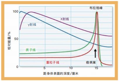科学家们发现重离子的物理学特征是,重离子束进入身体后不会大量释放能量,只有在重离子停下来的位置才会释放其大部分能量,形成一个尖锐的能量峰(布拉格峰)。