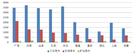 2019年全国水污染举报中,工业废水占47.3%,生活污水占21.0%,矿山废水占3.1%。水污染举报数量前十的省(区、市)中,广东、河南、山东、江苏、河北工业废水举报量较多,均在3000件以上,上海、河北工业废水问题在当地比较突出,相关举报占比高于全国平均水平约20个百分点。