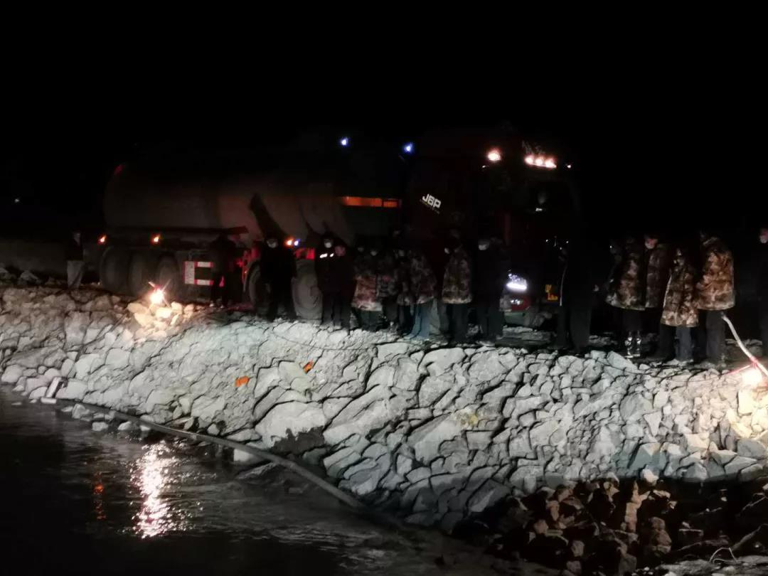 深夜的绥望桥,从来没有如此热闹过。投药现场灯火通明,挖掘机、推土机发出的轰鸣声不绝于耳,水泵嗡嗡地把药剂泵入河中,风吹着雪花撞到人的脸上,男子汉胡须上结出了冰凌,又被呼出的热气融化。