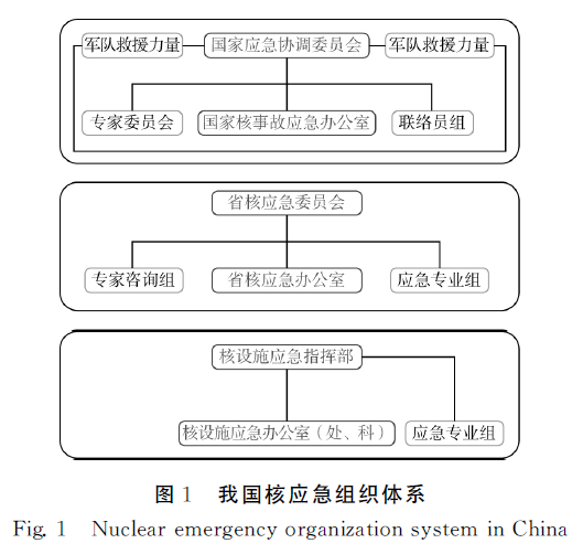 我国核应急实行三级组织体系,分别由国家级、省级 (包括直辖市、自治区)、核运营单位三级应急组织有效建构,核应急组织体系如图1所示。