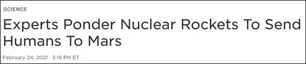 基于这些观点,他向NASA提议加大核动力火箭的研究投入。“如果我们想要在2039年实现载人登陆火星,就必须大幅增加核动力火箭的研究资金。”迈尔斯说。