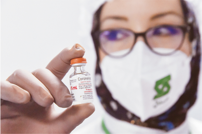 新冠肺炎疫情发生以来,中国彰显大国担当,倡导全球疫苗合作行动,为全球抗击疫情作出重大贡献。2021年9月29日,阿尔及利亚与中国合作生产新冠疫苗项目正式投产。图为当天一名工作人员在查看生产的新冠疫苗。 新华社发