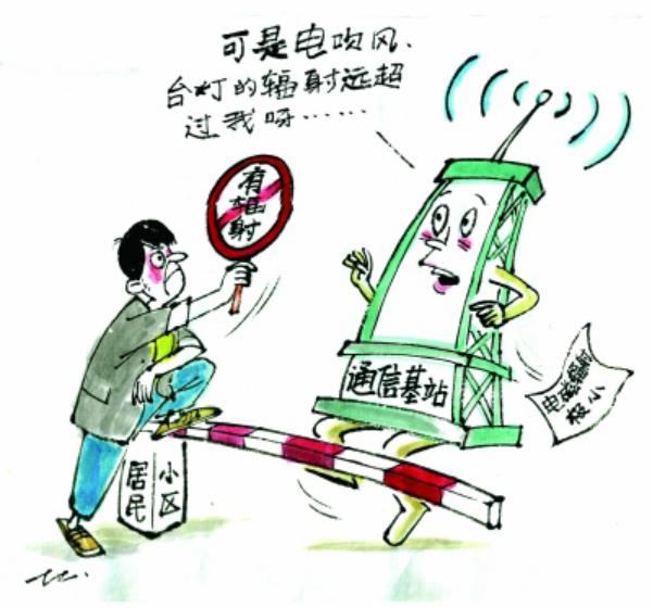 “辐射是否有危害与辐射源强度、人所处位置离辐射源的距离有关系。换句话说,要考虑人接受辐射的量。不管是什么辐射,如果强度非常大,都是有害的。”赵亚民说,所以,各国政府监管部门都通过审评控制,使人经常达到的地方处于辐射安全状态,对人体的影响可以小到忽略不计。一般来说,电磁辐射的强度,基本上与辐射源距离的平方成反比,辐射衰耗特别大。比如,在修建电视塔时,有关部门不但要求把塔顶修得足够高,以致塔顶的天线所发出的辐射离人群足够远,还要在电视塔周围划定一个管理区,保证区域之外的公众受到的辐射影响很小。但无论怎样,都不可能把辐射降为0,要不然就无法接收到电视信号。通信基站也是一样,按照规定,在我国建设通信基站,必须符合基站电场强度小于12伏/米或功率密度小于40微瓦/平方厘米(0.4瓦/平方米),单个基站的要求执行电场强度为5.4伏/米,功率密度为8微瓦/平方厘米。这比国际非电离组织推荐的标准严格11.25~26.25倍。目前,国际上许多国家也都采用了国际非电离组织推荐的标准,但同时也引用了一些“保护政策”,也叫最优化原则或者预防原则,实际规定的上限值远低于国际标准。这主要是在考虑政治、经济等因素的基础上,执行一个更小的值,充分保护人们的环境安全。赵亚民告诉记者,据他调查,虽然我国的标准偏严,但我国公民实际受到的照射情况和欧美等许多国家是一样的。在这样的标准之下,基站辐射不会对人体健康构成危害。