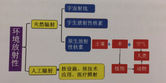 人类在日常生活中会受到各种各样的辐射照射,这些辐射照射有的是人工的(人工辐射源),也有的是天然的(天然辐射源,图1-8)。