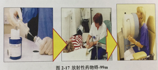 SPECT最常用的放射性药物含m锝(mTe)。核医学所有诊断程序中超过80%都使用"m锝,最常用于心脏和骨扫描。高锝酸盐离子( Tco)能被甲状腺、唾液腺及其他消化腺摄取,可用于甲状腺功能测定和甲状腺显像。病人使用"锝流程图见图2-17