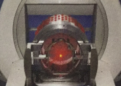 电子和或X射线远距离放射治疗最常见的设各是前面介绍的射线装置-医用电子直线加速器。日前Y射线远距离放射治疗最常用的设备是伽玛刀(图2-21~图2-24)。伽玛刀名为“刀”,但实际上并不是真正的手术刀,而是种非常先进的放射治疗设备,其全称是伽玛射线立体定向治疗系统。伽玛刀是在一个形状为截去顶部的半球形的头盔上排列多个密封钻放射源的装置,估放射源的Y射线从不同角度汇聚于一个点上,治疗时,用γ线汇聚点照射到病人头颅内的病变位置。此时,焦点区的癌细胞所受射线照射剂量比非癌区健康细胞所受剂量高出上百倍,其治疗照射范与正常组织界限边缘如刀割一样非常明显,因此人们形象地称之为伽玛刀。伽玛刀适用于外科手术难度较大或无法开展外科手术的脑部脚瘤,还可以治疗颅内血管畸形和头部功能性疾病等非癌症疾病。