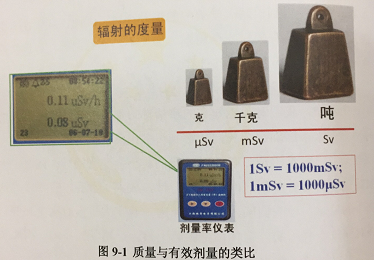 正如物体的质量可以用克、千克以及吨等单位度量,辐射也可用专门的单位度量(图9-1)。随着辐射对人体影响研究的不断深入,人们为了描述辐射量的大小与其所致机体健康危害的程度,定量地评估辐射照射有可能导致的风险,学者们引入了有效剂量的概念。