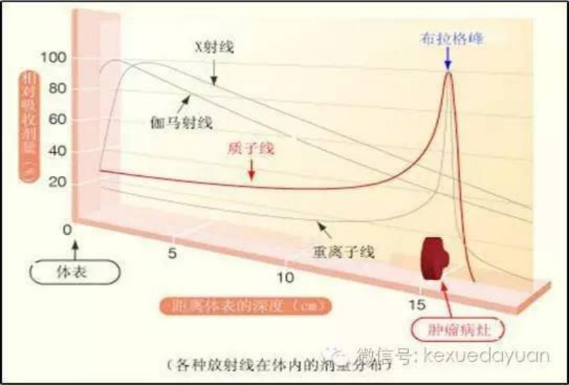 各种放射线在体内的剂量分布对比图