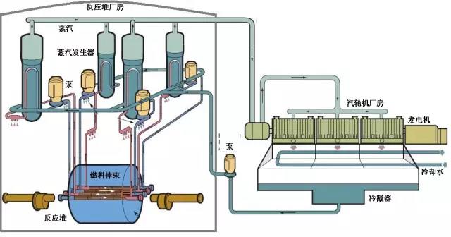 目前世界上的核电站60%以上都是压水堆核电站,其主要由反应堆、蒸汽发生器、汽轮机、发电机及有关系统设备组成。