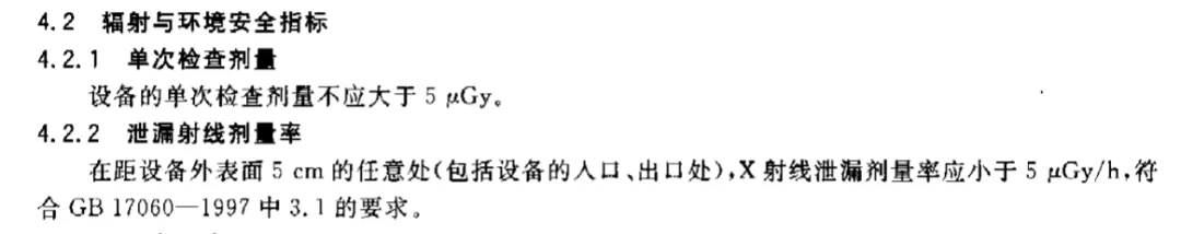我国和美国关于X光行李安检仪辐射限量的要求差不多,根据我国国标GB15208.1-2005的说明,设备的单次辐射剂量要小于5μGy,同样仪器周围包括出入口附近(5cm)站1个小时,所接收的辐射也不能多于5μGy。