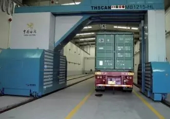 利用加速器或钴-60做射线源的,基于辐射成像原理的集装箱检查系统可有效打击这些犯罪活动。该系统由射线源、探测器、图像处理系统、控制系统和辐射防护与安全系统等部分组成。当集装箱通过时,快门自动打开,钴-60发出的y射线被准直器约束成扇形片状窄束,穿过集装箱到达探测器。探测器将接收到的y射线转换成电信号,可在屏幕上将集装箱内隐藏的走私品、毒品、武器和炸药等显示得一清二楚。