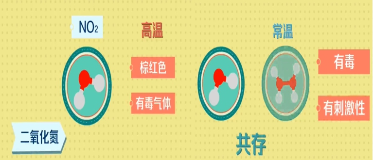 二氧化氮的化学式是NO2,在高温下为棕红色有毒气体。常温下,二氧化氮与四氧化二氮(N2O4)混合共存,具有毒性和刺激性。