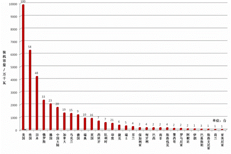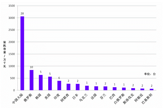 注:图中未包括中国台湾地区2台,总装机容量260万千瓦
