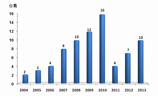 自日本福岛核事故发生以来,各国不断采取措施,对现有反应堆开展安全检查与评估,组织经验反馈与交流,不断改进优化核电技术,进一步提升了核电安全性。当前全球核电建设已经开始复苏,在福岛核事故后全球已经有22台核电机组相继开工(含2014年阿根廷1台小型堆)。图6为2004—2013年全球每年新开工核电机组变化情况。