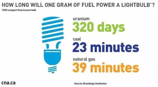 铀矿:320天;煤炭:23分钟;天然气:39分钟