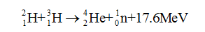 由于原子核间有很强的静电排斥力,只有在一亿摄氏度的超高温下,轻核才有足够的能量克服阻力发生聚变,因此超高温是发生核聚变所必需的外部条件,所以核聚变又称为热核反应。原子核的静电斥力与其所带的电荷成正比,因此原子序数越小、质子数越少的轻核聚变所需的动能(温度)就越低。所以只有一些较轻的原子核(例如氢、氘、氚、氦、锂等)才容易发生核聚变。最常见的核聚变反应是氘、氚反应生成氦和中子,同时释放出能量的过程,用反应式表示如下: