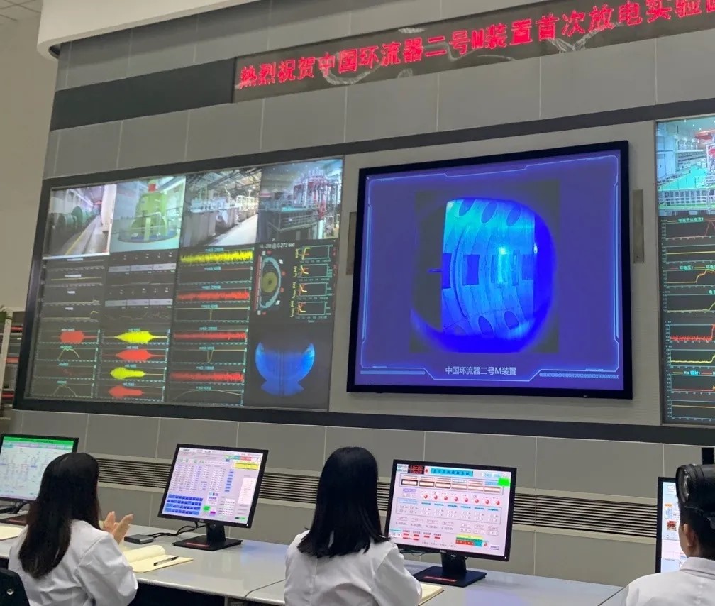 “1号电机、2号电机转速1480转每分钟,系统准备就绪;4号电机转速400转每分钟,系统准备就绪……中国环流器二号M装置首次等离子体放电实验开始!”12月4日14时02分,位于四川成都的中核集团核工业西南物理研究院内,中国环流器指挥 控制中心大屏幕上的蓝色电光闪烁。