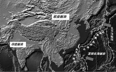 其中距我国沿海最近的板块俯冲带是东海外侧的琉球海沟俯冲带,另一个板块俯冲带为位于南海东侧的马尼拉海沟俯冲带(见图5)。