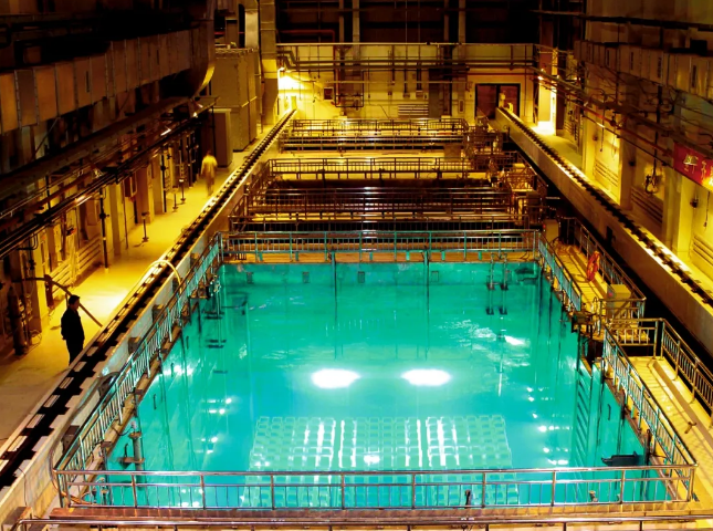 中国核工业科技馆有这样两张图片,第一张好像一个游泳池,第二张好像医生在讨论病情。其实不然,这两张图片皆与乏燃料有关,第一张是乏燃料贮存水池,第二张是乏燃料后处理操作现场。那么乏燃料是什么?有什么用呢?且听小编一一道来。