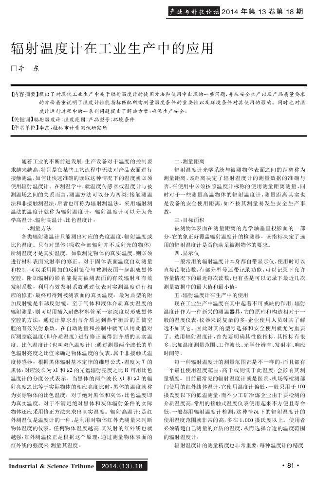 辐射温度计在工业生产中的应用