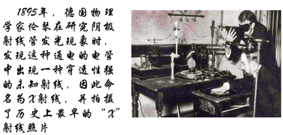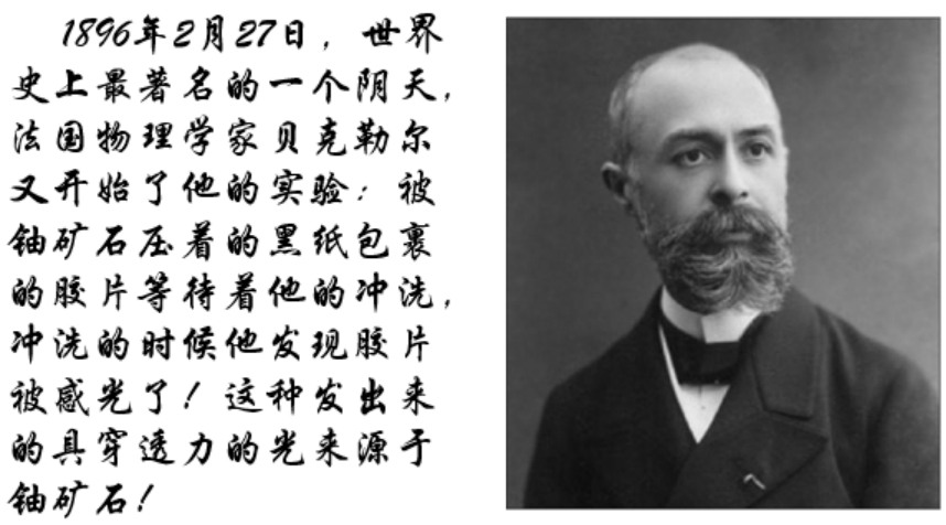 当伦琴发现X射线这一现象时,从事光学研究的贝克勒尔受到激发,决定去研究“在X射线与天然发生的磷光之间”是否存在任何联系。