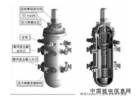 韩国SMART的设计目的是建造一座可用于海水淡化兼作发电,堆芯热功率330兆瓦的反应堆及海水淡化应用系统。这种堆型具有一体化的蒸汽发生器和先进的安全特性,用于发电可达到100兆瓦,同时可以供热。设计寿命是60年,换料周期为3年。