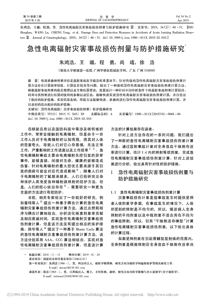 急性电离辐射灾害事故损伤剂量与防护措施研究