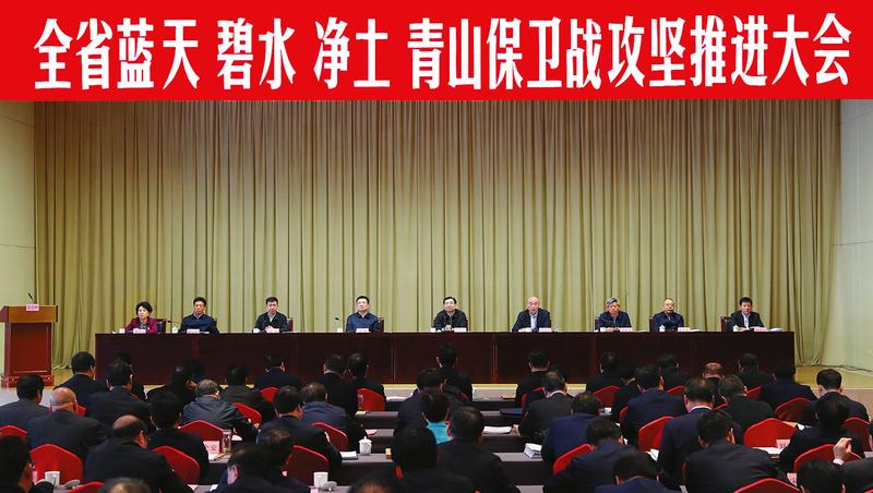 3月26日,全省蓝天、碧水、净土、青山保卫战攻坚推进大会在西安召开。省委书记胡和平出席会议并讲话。