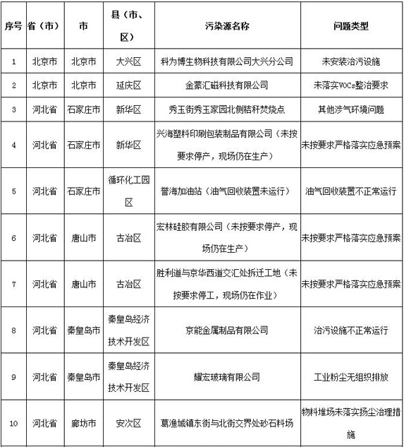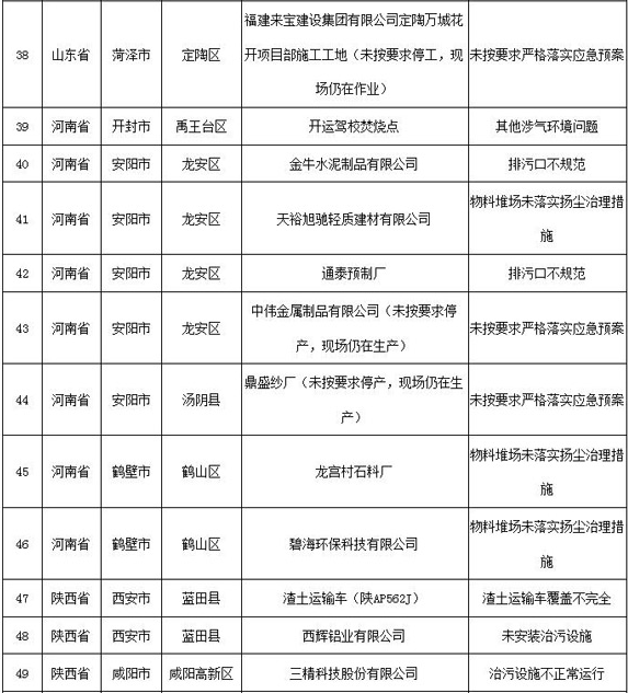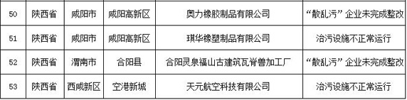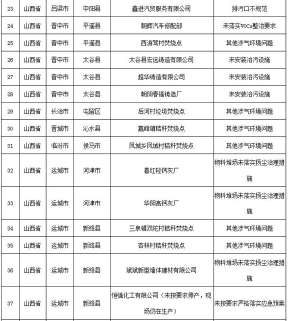 其中,山西省吕梁市中阳县1家(废气仅通过墙壁开孔外排,未设置规范的排气筒);河南省安阳市龙安区2家(均为排气筒高度不足15米)企业废气排放口设置未达到环评要求。