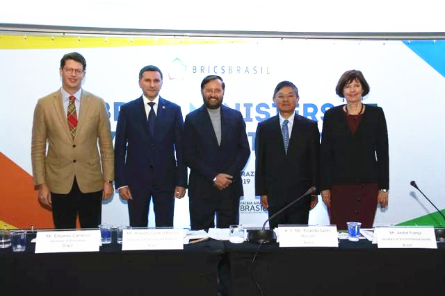 第五次金砖国家环境部长会议于2019年8月15日在巴西圣保罗召开,会议主题为“城市环境管理对提高城市生活质量的贡献”。会议由巴西环境部长里卡多·萨列斯主持,中国生态环境部副部长黄润秋,俄罗斯自然资源与生态部部长科贝尔金,印度环境、森林与气候变化部部长普拉卡什·贾瓦德卡和南非环境、森林与渔业部长芭芭拉·克里西出席会议。会议审议通过了《第五次金砖国家环境部长会议联合声明》和部长决定等文件。