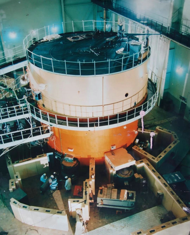 1955年,按照党中央“集中力量发展核事业”的指示,我国从前苏联引进一座7000千瓦重水反应堆(101堆)和一台直径1.2米的回旋加速器。101堆于1956年开始建造,1958年6月13日首次达到临界。同年9 月27 日,国务院在原子能院隆重举行我国第一座重水反应堆和第一台回旋加速器(简称“一堆一器”)移交生产典礼,国务院副总理、国家验收委员会主任聂荣臻签字验收,国务院副总理兼外交部长陈毅元帅剪彩。