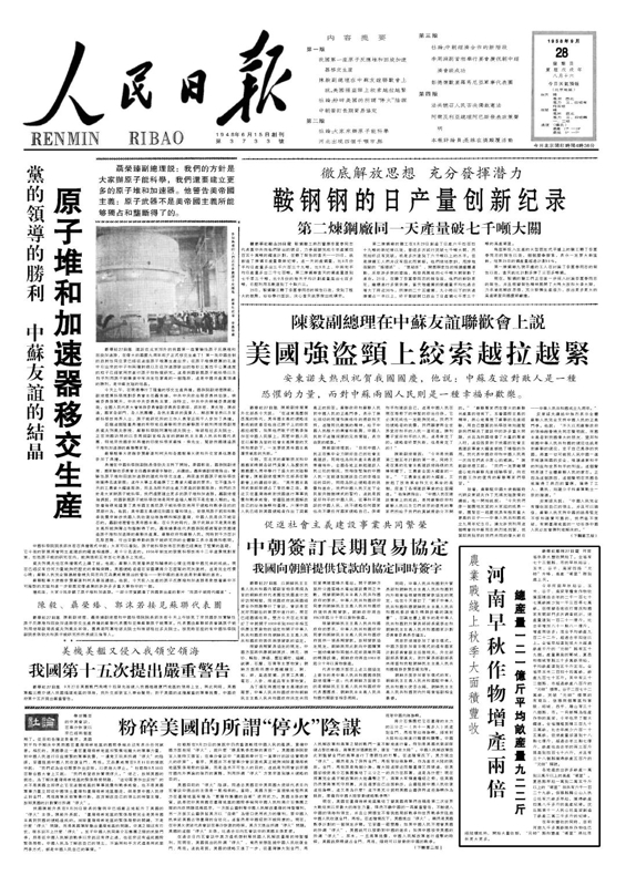 《人民日报》头版刊登消息,称“它们的建成标志着我国已经开始跨进了原子能时代”