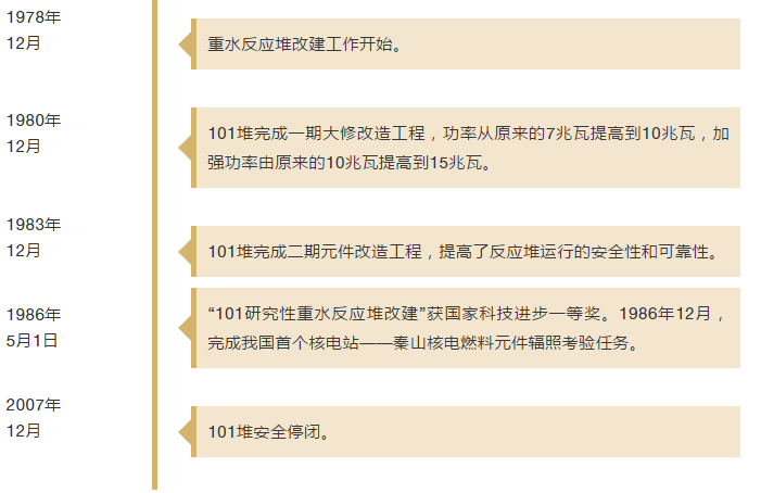 经过近50年的安全运行,2007年底,101堆永久停闭,进入安全关闭期等待退役。如今“一堆一器”已入选中央企业工业文化遗产、国家工业遗产及全国重点文物保护单位。101堆退役完成后将拟建为首座研究堆历史纪念馆。