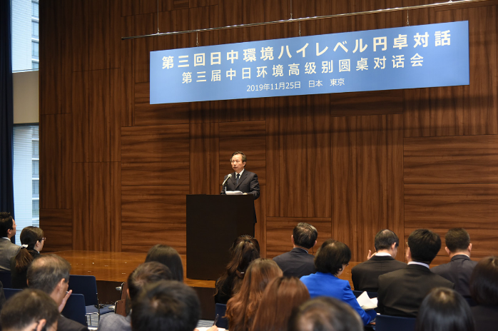 11月25日,第三届中日环境高级别圆桌对话会在日本东京举行,中国生态环境部部长李干杰、日本环境大臣小泉进次郎出席对话会并致辞。