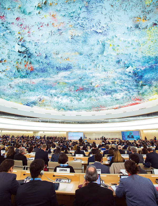 构建人类命运共同体相继被写入联合国社会发展委员会、安理会、人权理事会以及联合国大会裁军与国际安全委员会等机构的多项决议中,有力推动这一理念变成全球性共识。图为2017年2月27日,联合国人权理事会第34次会议开幕。该会议通过决议,明确表示要构建人类命运共同体。 新华社记者 徐金泉/摄