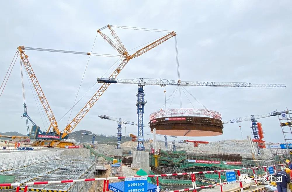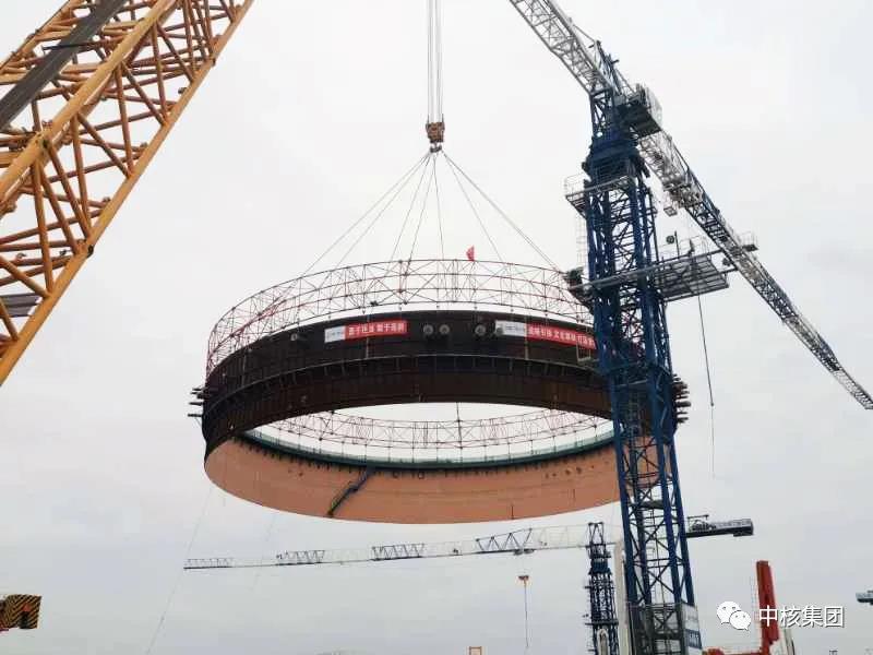钢衬里是核电站反应堆厂房安全壳的主要组成部分,起着防泄漏及预应力混凝土模板作用。3月24日,中核集团全球在建第5台华龙一号核电机组——中国核电漳州核电1号机组首个钢衬里模块于6时16分正式起吊,9时06分顺利就位,吊装成功。