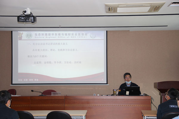 2020年4月9日,生态环境部华东核与辐射安全监督站(以下简称华东监督站)组织开展党建工作研讨活动。华东监督站机关党委副书记讲授题为《加强基层党组织建设 打造核与辐射安全监管铁军》的辅导报告,就习近平总书记在中央和国家机关党的建设工作会议上的讲话精神、党的相关法规条例、2020年党建工作要点等内容进行讲授。华东监督站全体党务干部参加。