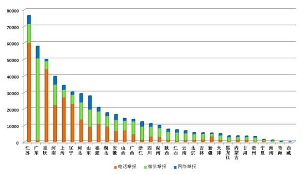 图2 2019年全国各省(区、市)举报情况