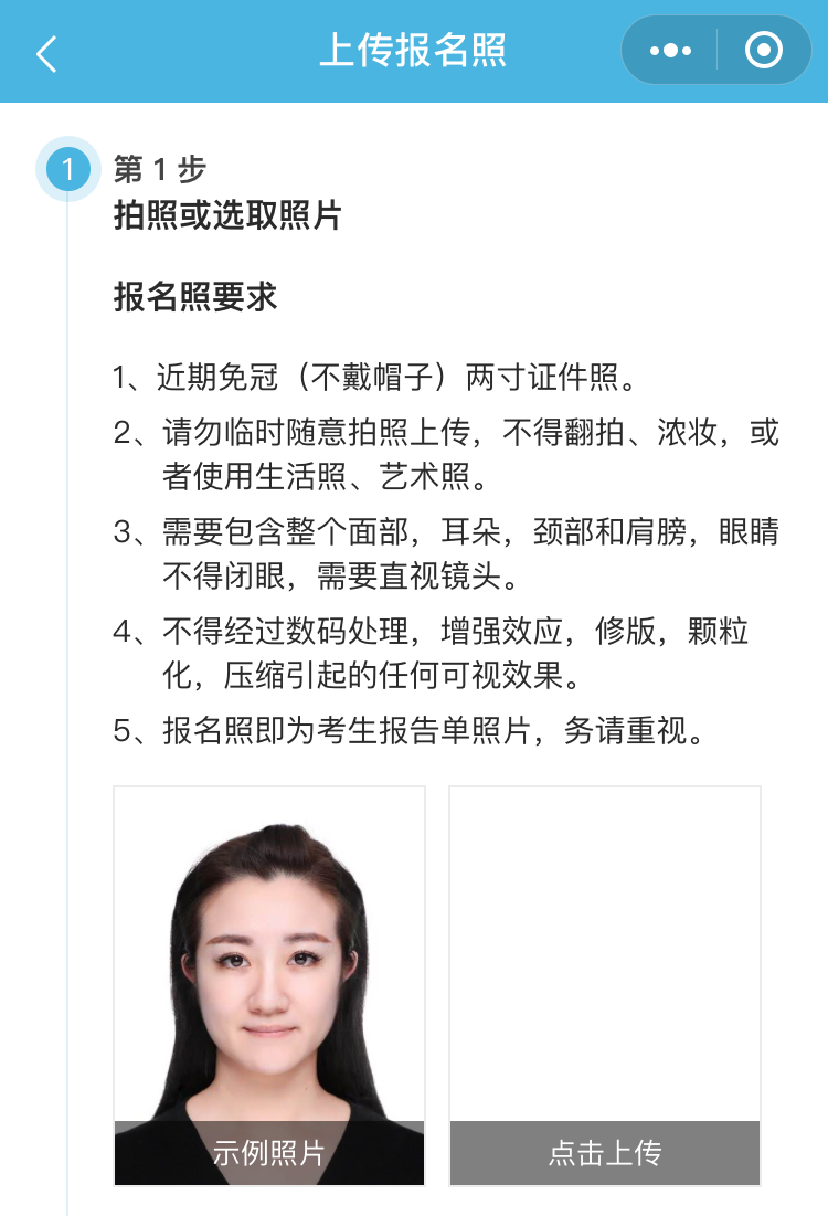 请考生严格按照报名照片尺寸与质量要求上传照片: