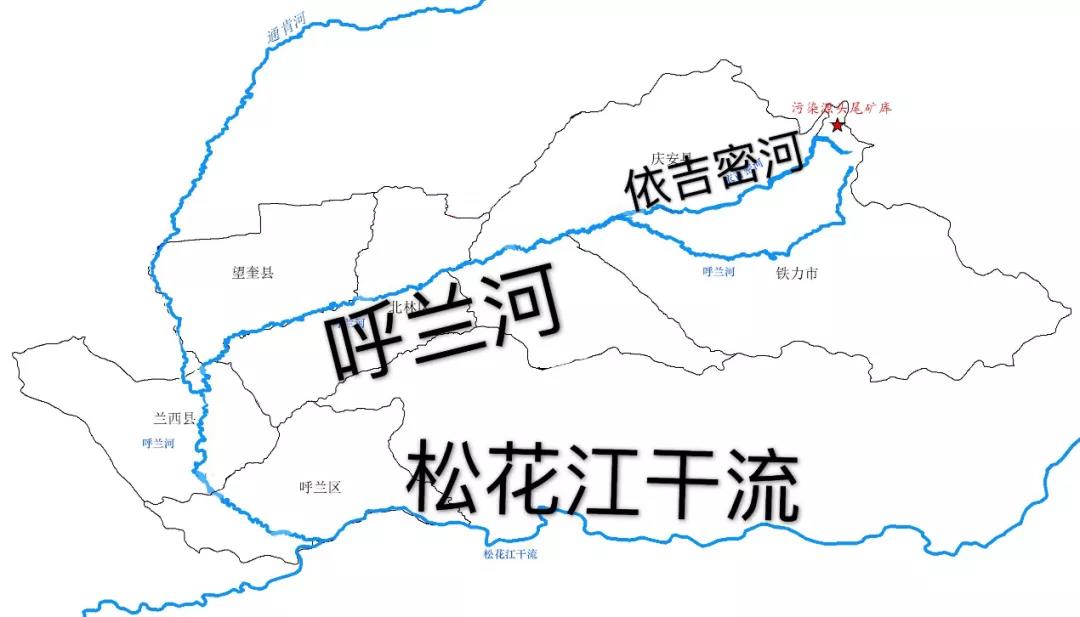 尾矿库下游3公里后就是依吉密河。依吉密河是松花江的二级支流,污水进入依吉密河,93公里后就将进入呼兰河,沿呼兰河而下295公里就将到松花江。