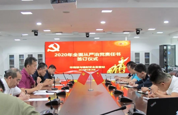 2020年5月18日,生态环境部华南核与辐射安全监督站(以下简称华南监督站)举行2020年全面从严治党责任书签订仪式。全体党员、干部参加。