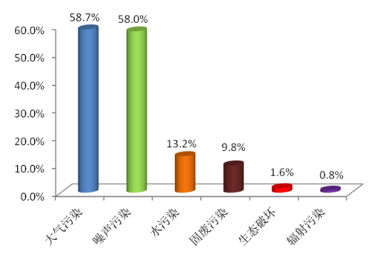 (注:一件举报中可能同时涉及多种问题,因此各污染类型之和≥100%。)