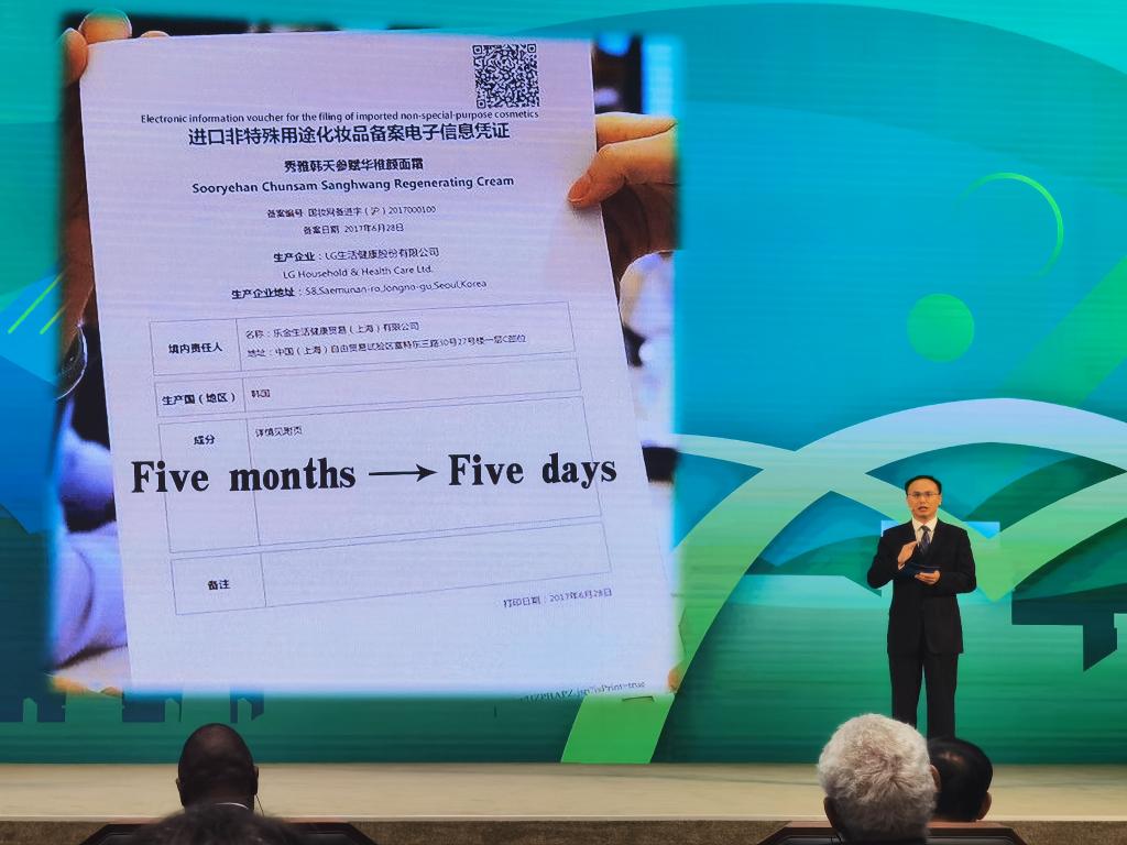2021年6月16日,在“中国共产党的故事——习近平新时代中国特色社会主义思想在上海的实践”特别对话会上,中国(上海)自由贸易试验区管委会政策研究局副局长郑海鳌进行讲述。 新华社记者 吴宇 摄