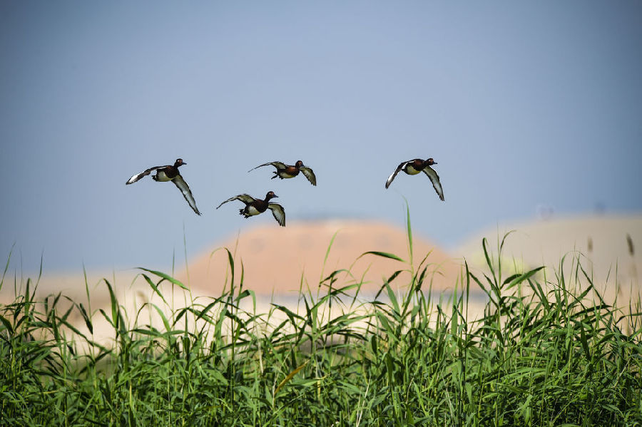 宁夏石嘴山市平罗县沙湖景区(新华社记者冯开华 摄)