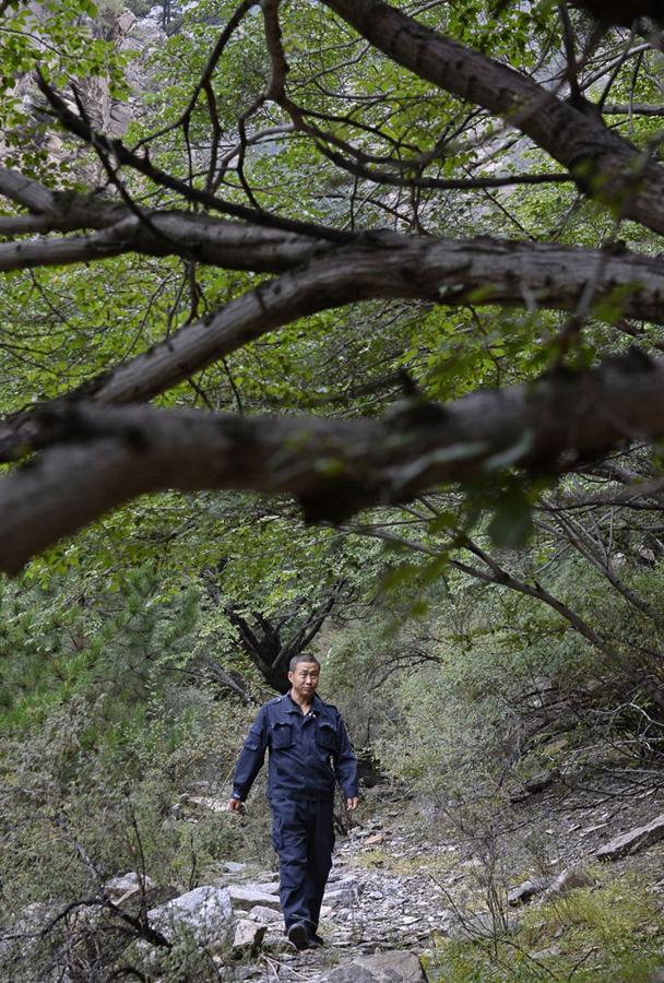 宁夏贺兰山护林员孙国亮在护林区巡山(新华社记者王鹏 摄)