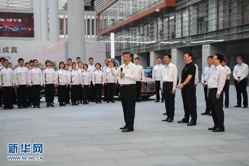 企业展厅里,习近平察看了最新款式的整车产品,了解集团创新驱动、体制机制创新、产业结构优化升级情况,并同职工代表简短交流。他强调,推动我国汽车制造业高质量发展,必须加强关键核心技术和关键零部件的自主研发,实现技术自立自强,做强做大民族品牌。当今世界制造业竞争激烈,要抢抓机遇,大力发展战略性新兴产业,实现弯道超车。希望大家发愤图强、不负韶华,在推动东北振兴中奉献聪明才智,在实现中华民族伟大复兴中国梦的进程中书写壮丽的青春华章。