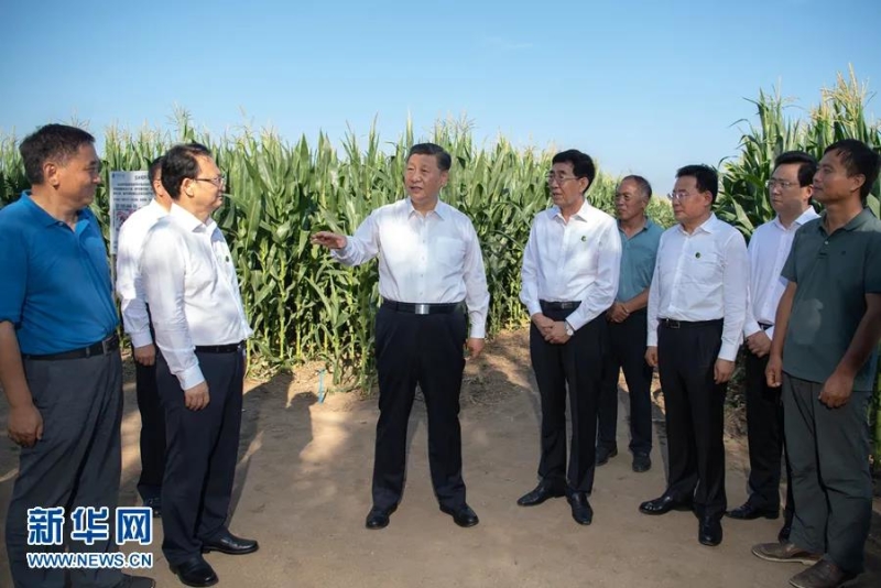 7月22日至24日,中共中央总书记、国家主席、中央军委主席习近平在吉林省考察。这是7月22日下午,习近平考察四平市梨树县国家百万亩绿色食品原料(玉米)标准化生产基地核心示范区地块。新华社记者 鞠鹏 摄