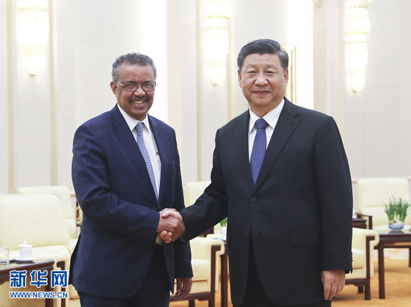 1月28日,习近平在北京人民大会堂会见世界卫生组织总干事谭德塞。 新华社记者 鞠鹏 摄