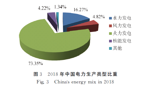 我国核电发展经历了5个阶段:探索起步、规划发展、快速发展、暂缓建设和重启阶段。在电力系统中,水电、风电及光伏受到自然条件制约,发电具有不稳定性,难以满足用电负荷。核电作为高能源密度的清洁能源,能满足发电需要。目前,核电已逐步成为我国电力发展中的支柱产业。据统计,我国2018年电力生产类型比重如图3所示,核电占比4.22%。预计到2020年,核电在能源结构中将上升至5%,我国大陆在建核电装机容量将达到5800万千瓦。