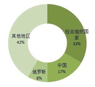 在装机容量方面,IEA最新统计数据显示,2019年,全球核电总装机容量443吉瓦,新增装机容量5.5吉瓦,与2018年的11.2吉瓦(1989年以来最大新增容量)相比大幅下降;全球在建核电装机容量60.5吉瓦,其中经合组织国家、中国和俄罗斯在建核电装机占比分别为33%、17%和8%。